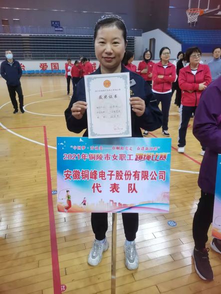 全市女職工跳繩比賽由市總工會主辦,共有全市工會系統(tǒng)35個(gè)單位組隊(duì)參賽,222名女職工、22支隊(duì)伍分別報(bào)名參加單人項(xiàng)目和集體項(xiàng)目比賽。公司工會選派了2名優(yōu)秀女職工選手參加了單人項(xiàng)目。經(jīng)過參賽選手奮勇拼搏,最終電容器分公司孫艷紅以一分鐘單搖201個(gè)的好成績在全市222名參賽選手中排名第11名,榮獲“優(yōu)秀獎(jiǎng)”。