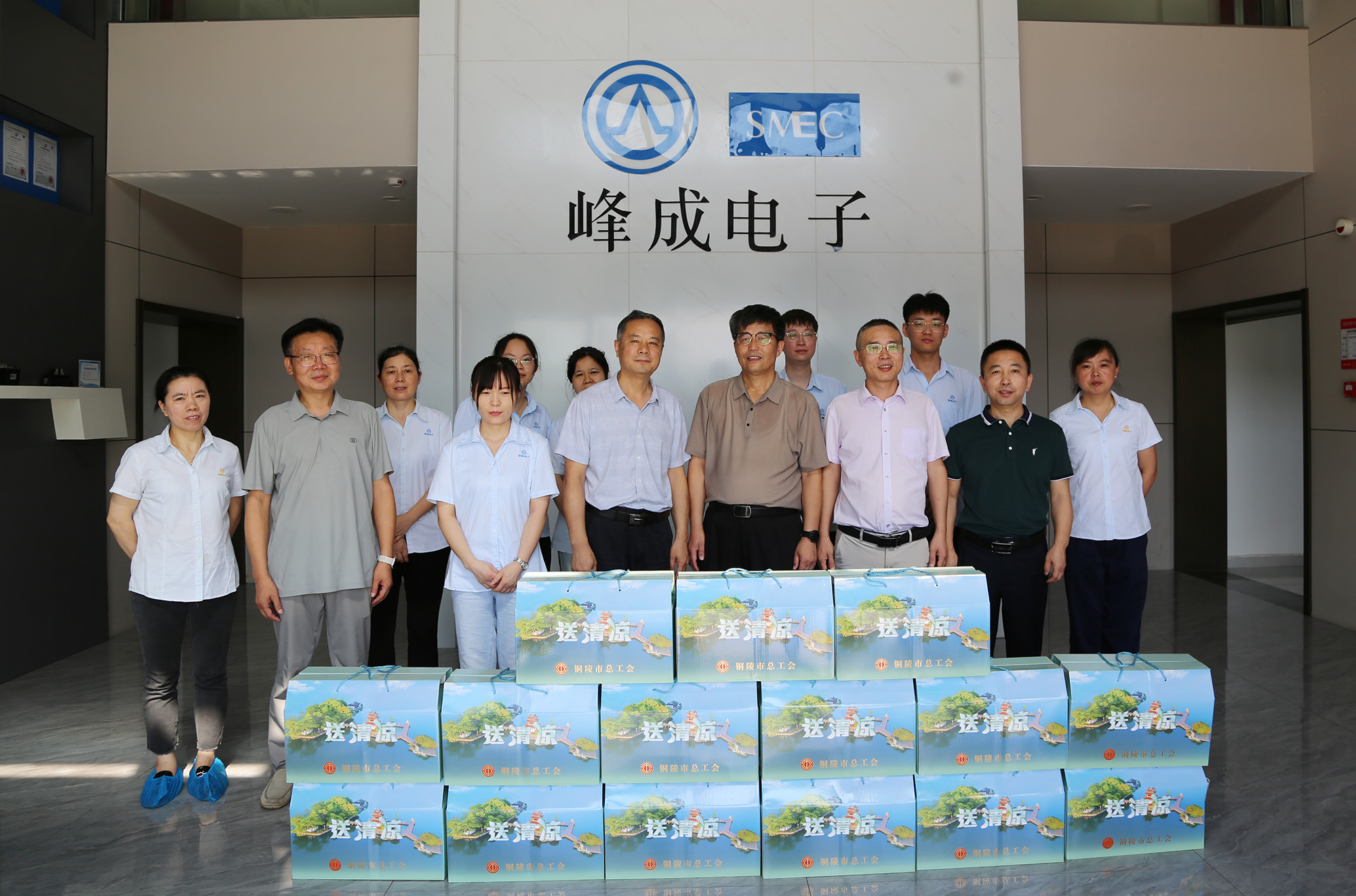 7月25日上午,市總工會(huì)副主席朱永宏一行來(lái)公司開(kāi)展“送清涼”高溫慰問(wèn)活動(dòng)。公司副總經(jīng)理、財(cái)務(wù)總監(jiān)郭傳紅,黨委副書記、工會(huì)主席潘世宇,總經(jīng)理助理潘焱堯等陪同。