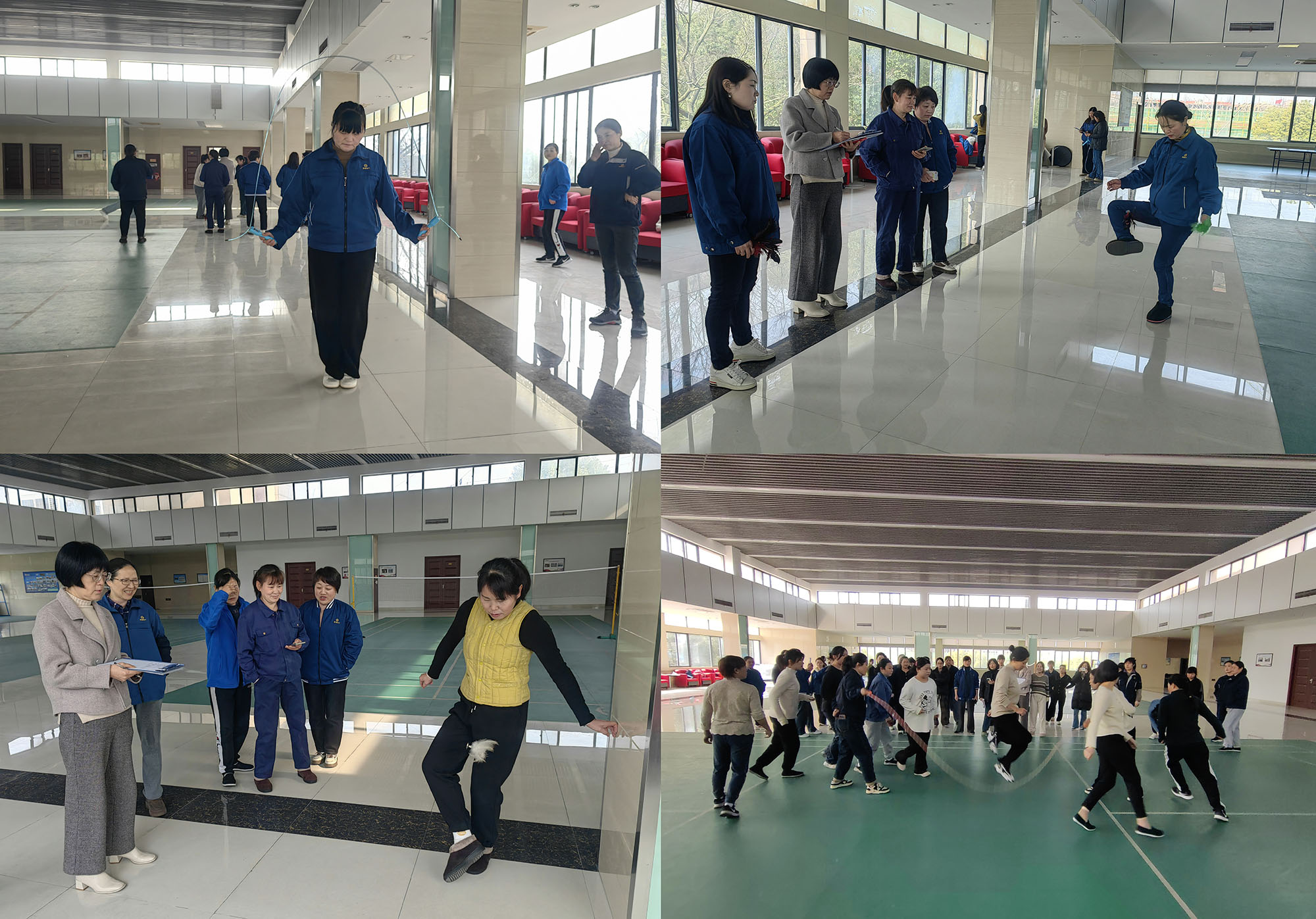 當日上午,女工文體活動在一片熱烈的氛圍中拉開帷幕,吸引了來自公司機關(guān)及生產(chǎn)一線的 50 余名女職工踴躍參與。在單人跳繩比賽中,女職工們身輕如燕,腳尖快速點地,跳繩在她們手中飛速旋轉(zhuǎn),令人目不暇接,現(xiàn)場歡聲笑語此起彼伏。踢毽子比賽同樣精彩紛呈,大家各顯神通,毽子在她們腳邊有節(jié)奏地跳動,展現(xiàn)出靈動的身姿。而 “十人八字” 集體跳繩項目更是將活動推向高潮。隨著裁判一聲令下,跳繩比賽正式開始,兩位甩繩選手動作整齊劃一,一根長繩快速旋轉(zhuǎn),隊員們依次進入跳繩區(qū)完成跳躍。這一項目不僅考驗個人的反應速度與身體協(xié)調(diào)性,更需要團隊之間的默契配合,充分展現(xiàn)了女職工們團結(jié)拼搏的精神風貌。